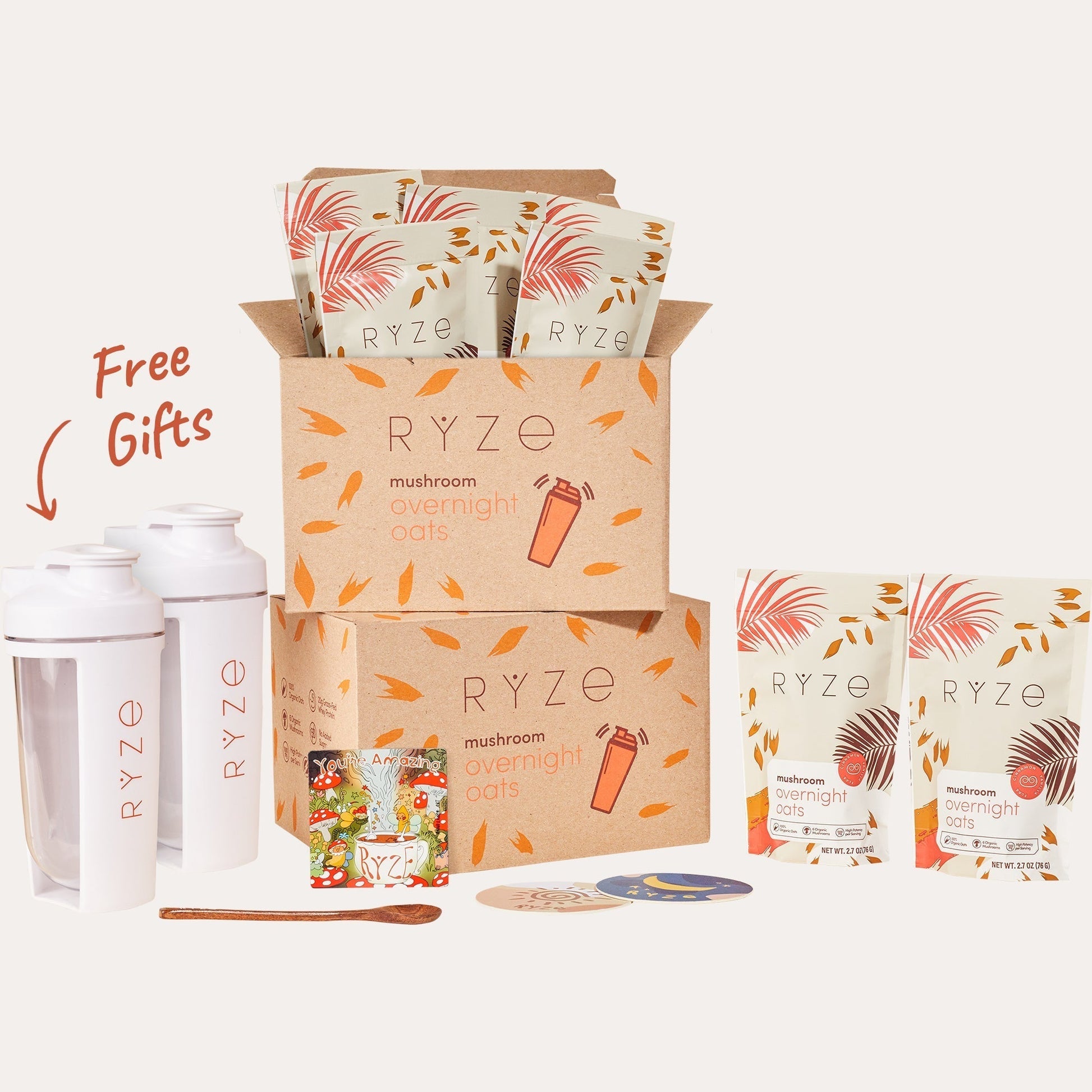 RYZE Overnight Oats is powered by 20g of protein. 6 adaptogenic mushrooms and gluten-free organic oats. 30 second prep and you can enjoy the most delicious breakfast you've ever had!